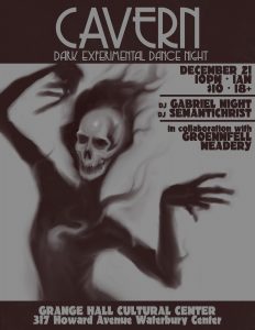 DJ Gabriel Night & DJ Semantichrist have been working together to bring dark music events to VT for the last 7 years. Cavern is a brand new event with the goal of sharing excellent music, experimental video mixing techniques, and creating a new space for underground culture to thrive.